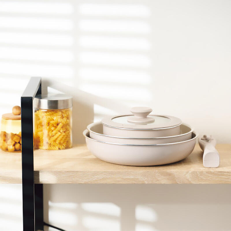 焦げ付きにくく、着脱ハンドルでコンパクトに収納可能です。