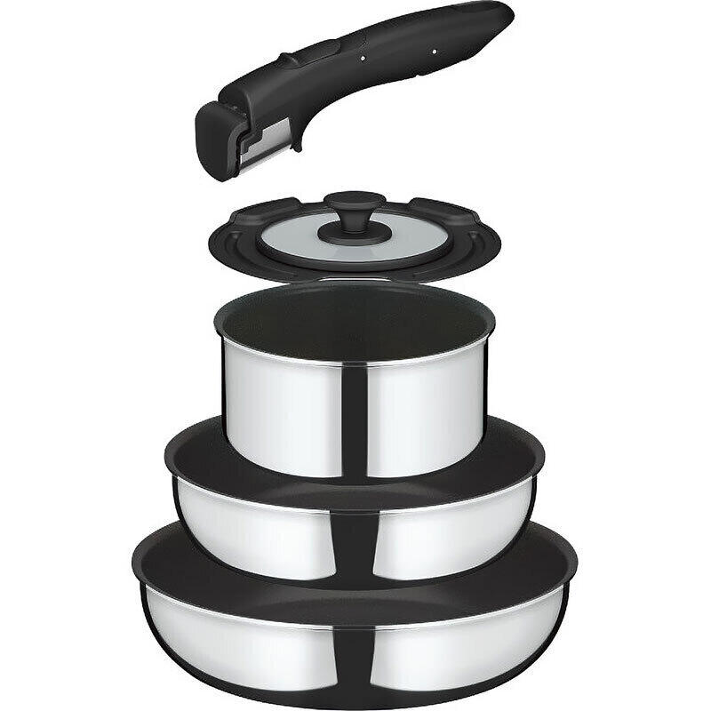 IH・ガス火両方OK!ベーシックなフライパン・鍋5点セット!素地を活かした高級感のあるミラー仕上げを採用。アルミとステンレスの2層構造で側面・底面に凹凸が一切無いためお手入れ性アップ人気の深型フライパン22cmと26cm、煮込み料理に便利な16cm鍋、取っ手や鍋専用フタが一緒になったベーシックなセット。フライパンは硬質フィラーを配合した、耐久性コーティング。耐摩耗性の高さと焦げつきにくさが特長です。また、取っ手はワンタッチで取り付け・取り外しOK。