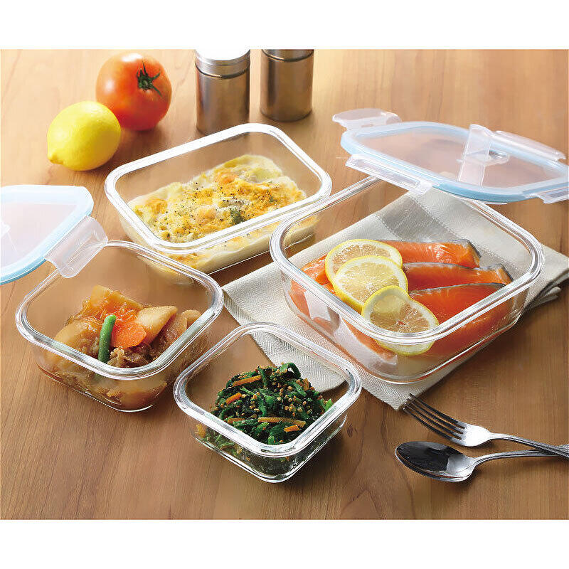 角型320ml(約11.7×11.7×5.9cm・320ml)×2、角型640ml(約17.6×13.1×6cm・640ml)×1、角型1.2l(約18.2×18.2×7.2cm・1.2l)×1●オーブンレンジ・電子レンジ可(本体のみ)