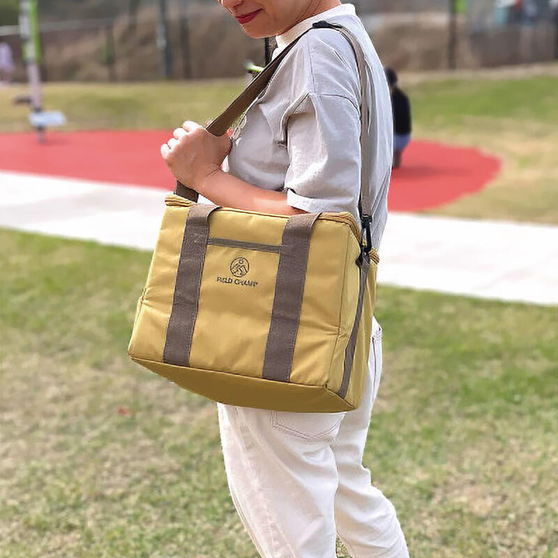 海や行楽、キャンプに最適!便利なクーラーバッグ。ベルトで留めてコンパクトに保管できます。