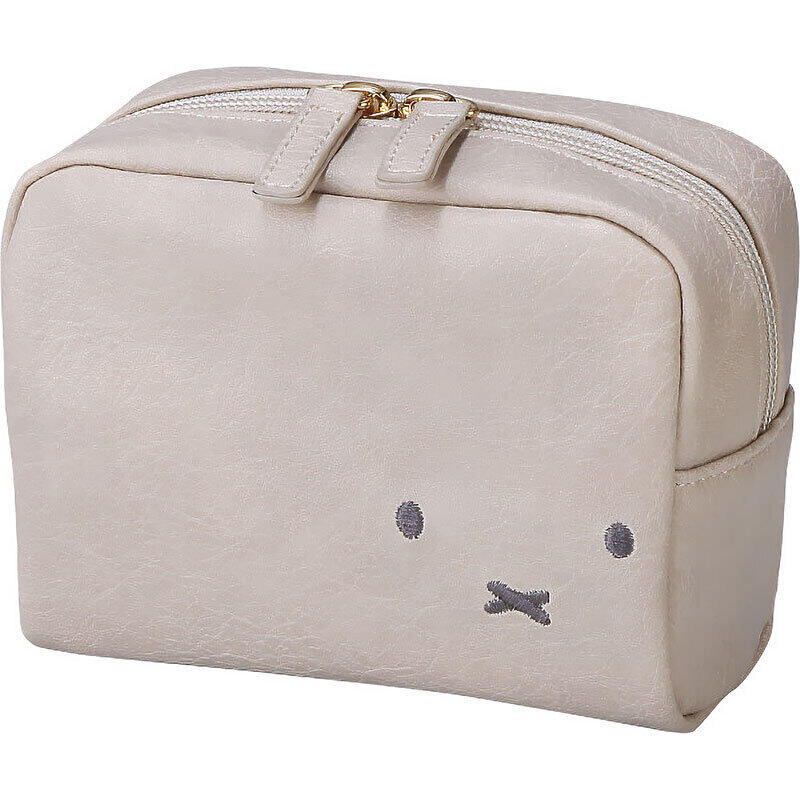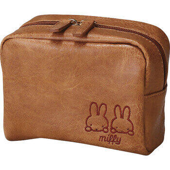 ミッフィーのお顔刺繍がかわいいポーチです。シボ合皮を使用し、ワンポイント刺繍で高級感のあるデザインにしています。内装にはポケットが2つ付いているので、小物等も整理整頓しやすい仕様になっています。ダブルファスナーで開閉しやすく、大きく開き中身が見やすい所もポイントの一つです。大人可愛いデザインで使いやすいポーチです。