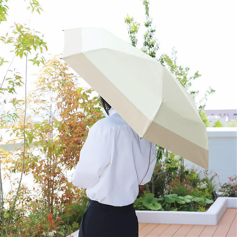 日差しや雨から守る晴雨兼用折りたたみ傘の遮熱タイプ。