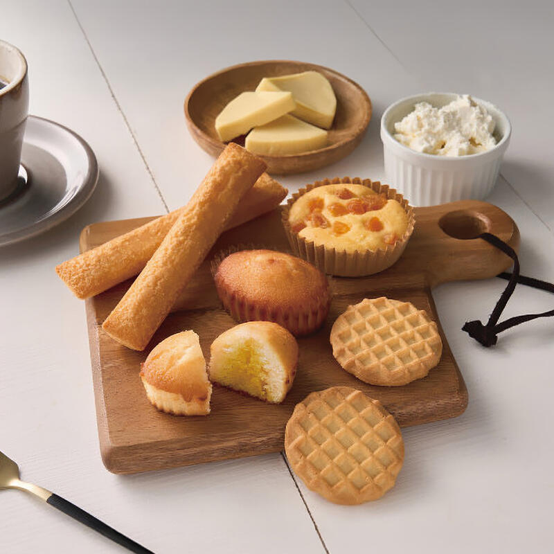 アプリコットチーズフィナンシェ・アプリコットチーズケーキ・チーズスティックケーキ×各3、ワッフルクッキー×4
