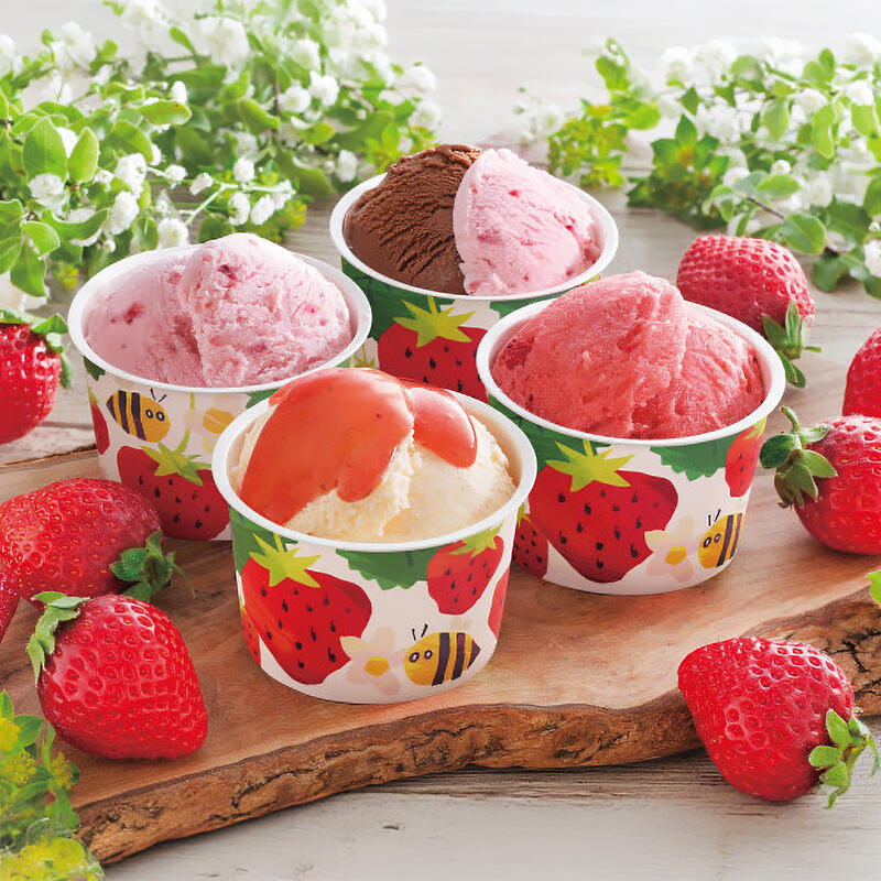 福岡の農家さんが愛情たっぷりに育てた「博多あまおう」をとことん楽しむアイスです。苺と相性のよい素材を選び、全く異なる4つの味わいに仕上げました。あまおうの魅力がぎゅっと詰まった、大人から子どもまで幅広く愛されるアイスです。