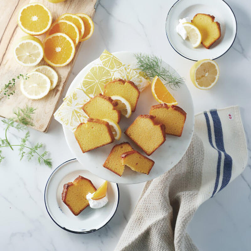 レモンとオレンジのフルーティーな香りや風味が広がる、シンプルで味わい深いカットケーキセット。
