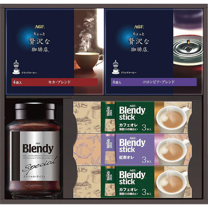 ちょっと贅沢な珈琲店ドリップコーヒー(モカブレンド・コロンビアブレンド)×各4P、ブレンディインスタントコーヒースペシャルテイスト70g、ブレンディスティック(カフェオレ×2・紅茶オレ)×各3P