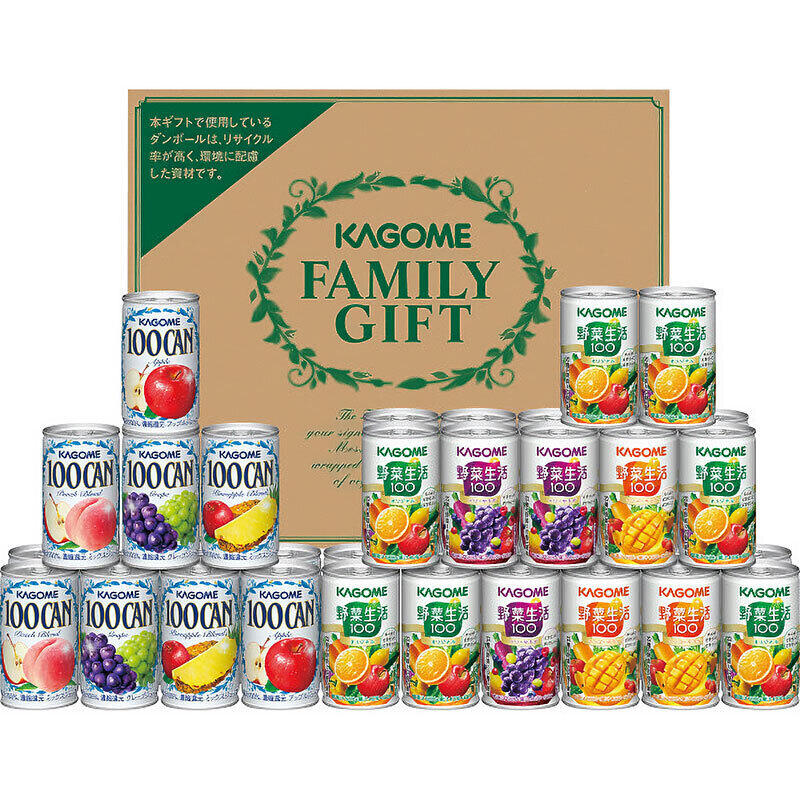 野菜と果物で健康への思いやりをギフトに。3種類の「野菜生活100」とアップルなどの100%ジュースをセットに。ファミリーにもおすすめです。