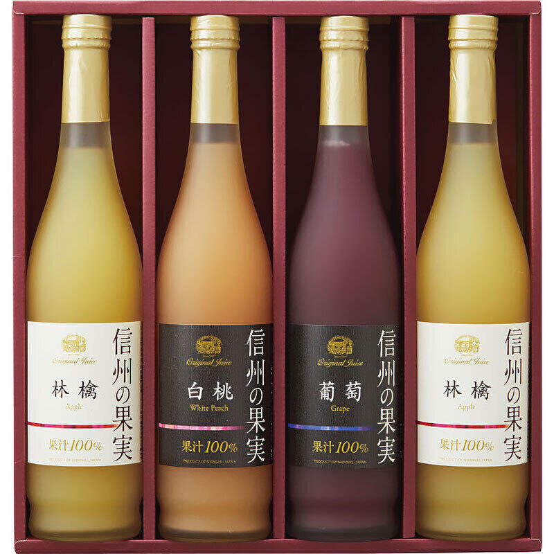 林檎ジュース500ml×2、葡萄ジュース500ml・白桃ジュース500ml×各1(※林檎・葡萄・白桃:信州産)
