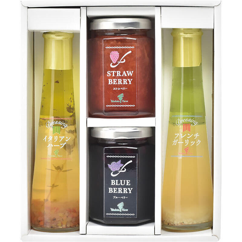 ジャム(ストロベリー・ブルーベリー)各145g×1、ドレッシング(イタリアンハーブ・フレンチガーリック)各122ml×1