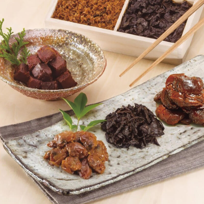 あみ30g、えび20g、かつお角煮40g、お茶漬の友30g、あさり30g、味道楽30g