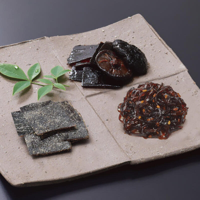 えびすめ45g、山海の味60g、椎茸こんぶ60g、細切りごま昆布60g、細切り甘口こんぶ60g