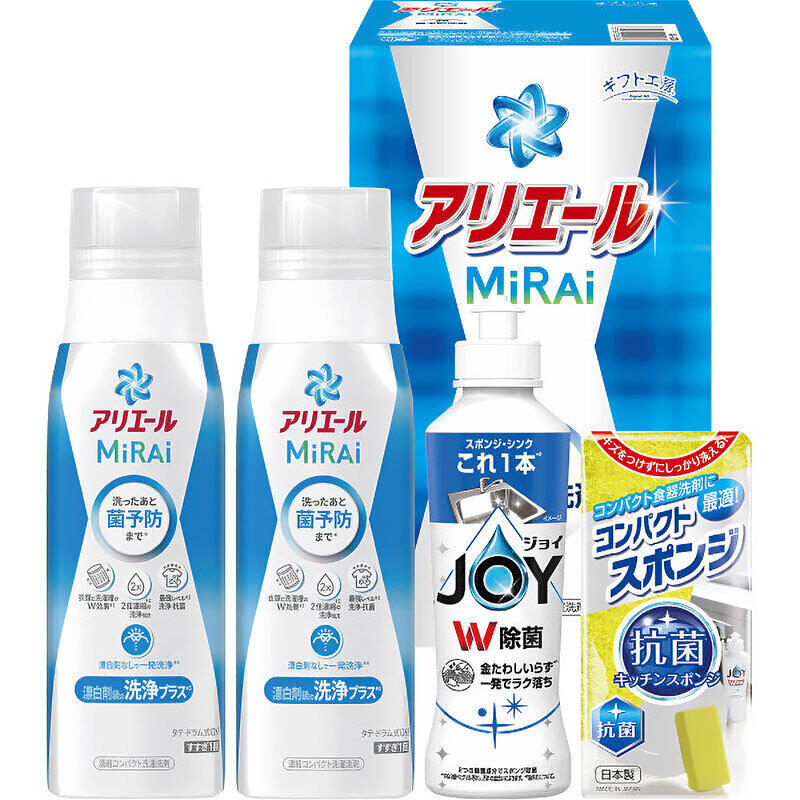 P&Gアリエールミライ330g×2、P&G除菌ジョイ170ml・コンパクトスポンジ×各1