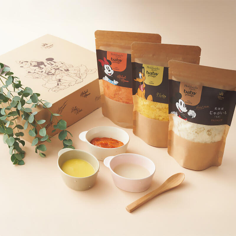 日本初登場のディズニーデザインのベビーフード。北海道産無添加です。