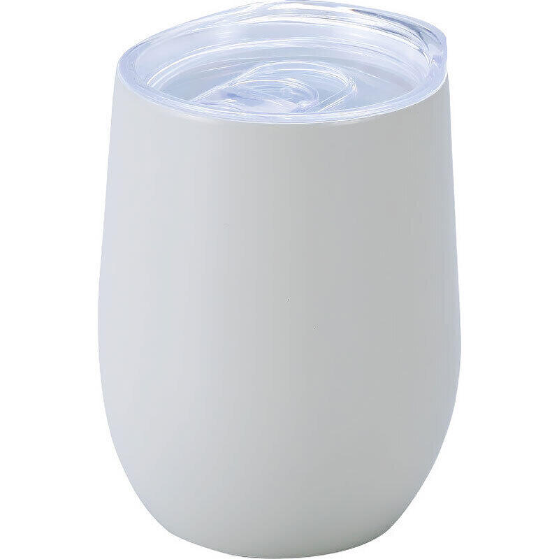 内側はセラミック加工のため、金属臭がなくコーヒーなどの色移りもしにくい。蓋付き。