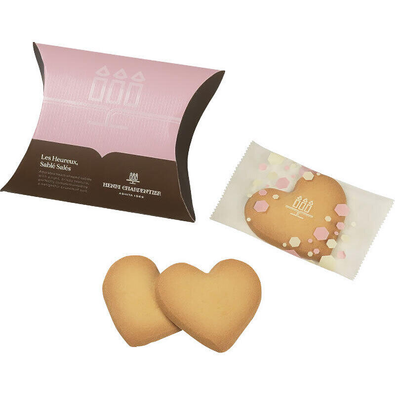 ハートの形がほほえみを呼ぶ、さっくりとした食感のサブレ。思わず笑顔になるかわいらしいハートの形は贈り物にぴったりです。やさしい甘さにほんのり塩味が広がります。