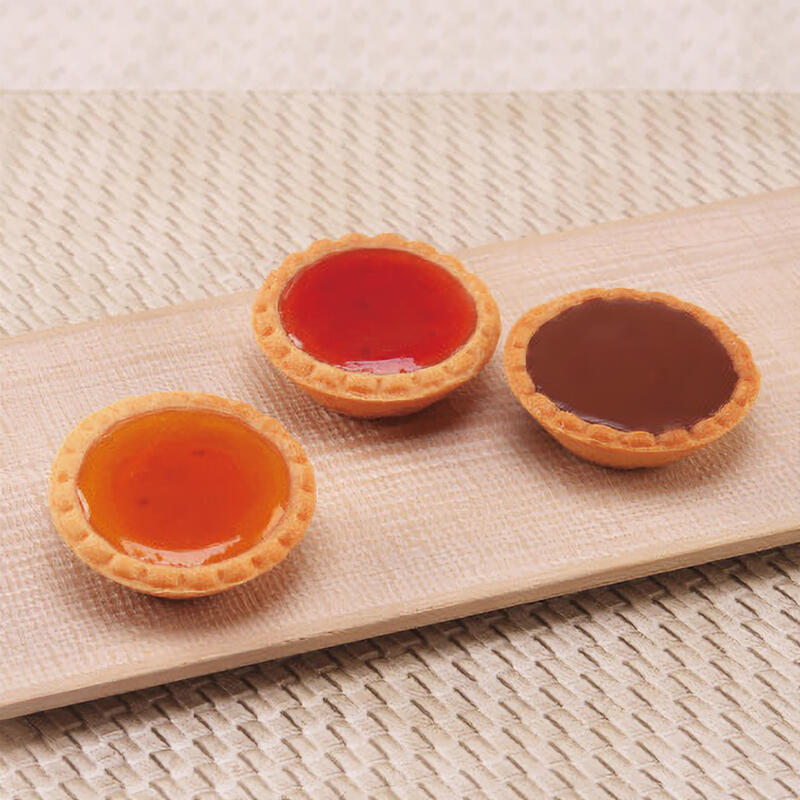 イチゴとオレンジの甘酸っぱいジャム、ミルクのなめらかなチョコレートを一口サイズに焼き上げたタルトに詰め込みました。