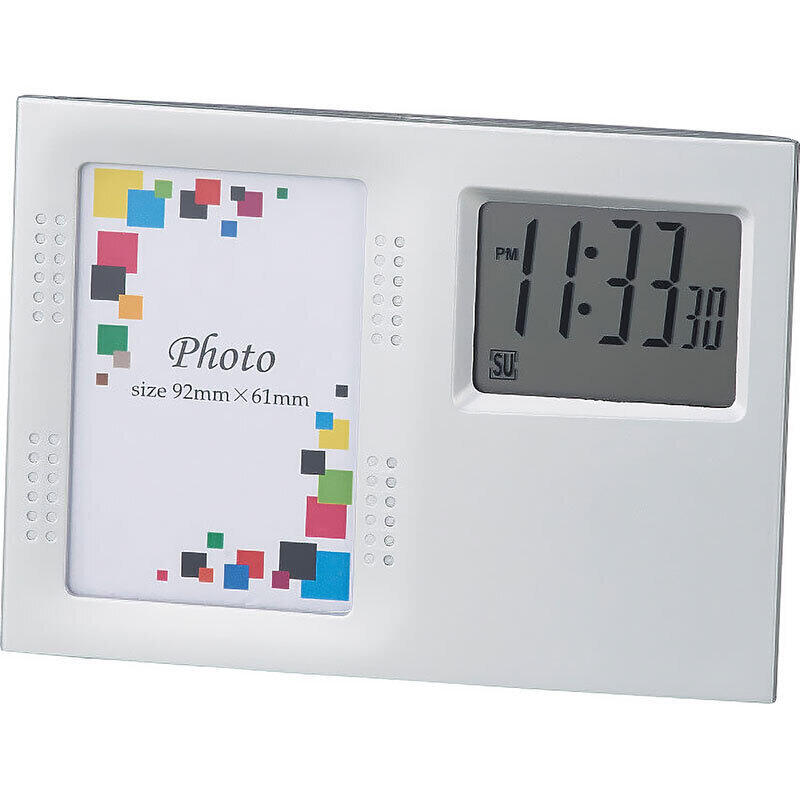 お気に入りの写真が飾れるデジタルフォトクロックです。写真サイズ92x61mm、フレームサイズ78×52mm。