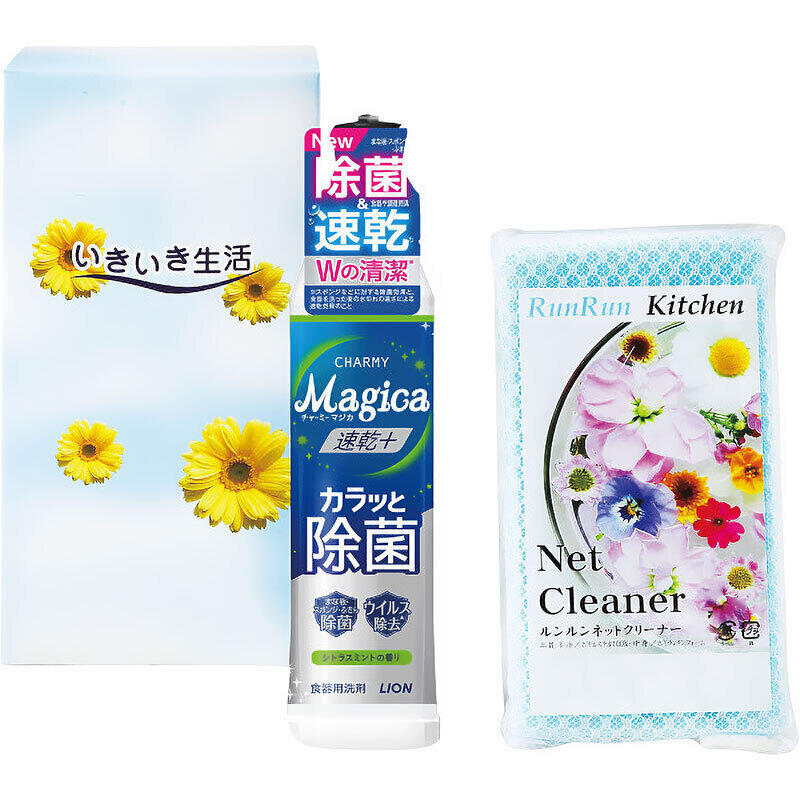 キッチンの必需品、食器用洗剤とネットクリーナーのセット。