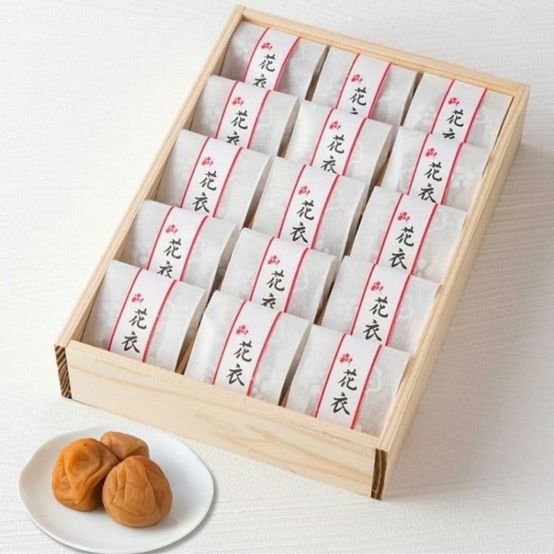 一粒ずつ丁寧に個包装した梅干しを、木箱にお詰めした、高級感あふれる一品。